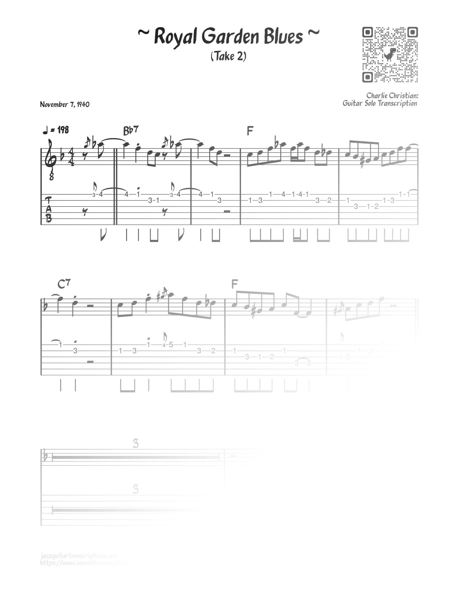 Charlie Christian - Royal Garden Blues (Take 2) [Nov 7, 1940] - Guitar Solo Transcription